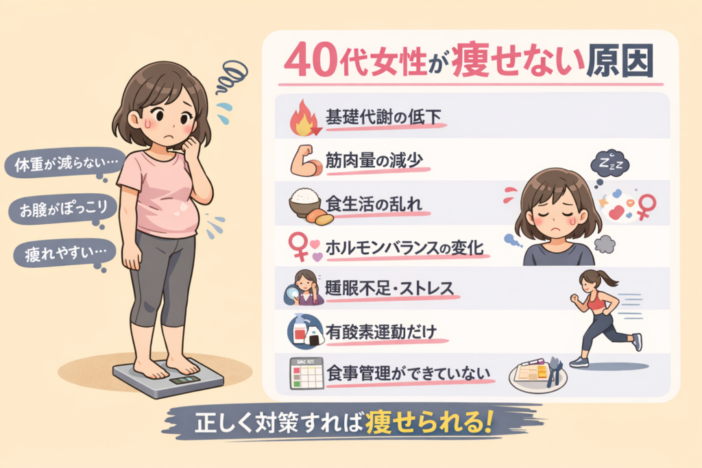 この記事では、40代女性が痩せない原因と、具体的な改善方法をわかりやすく解説します。